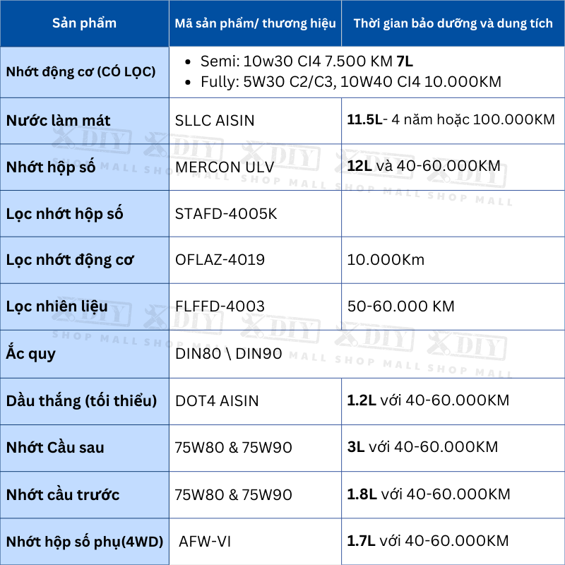 Combo bảo dưỡng Ford Ranger 2022–Nay Sport / Stormtrak / Limited 2.0 Bi-Turbo AT10