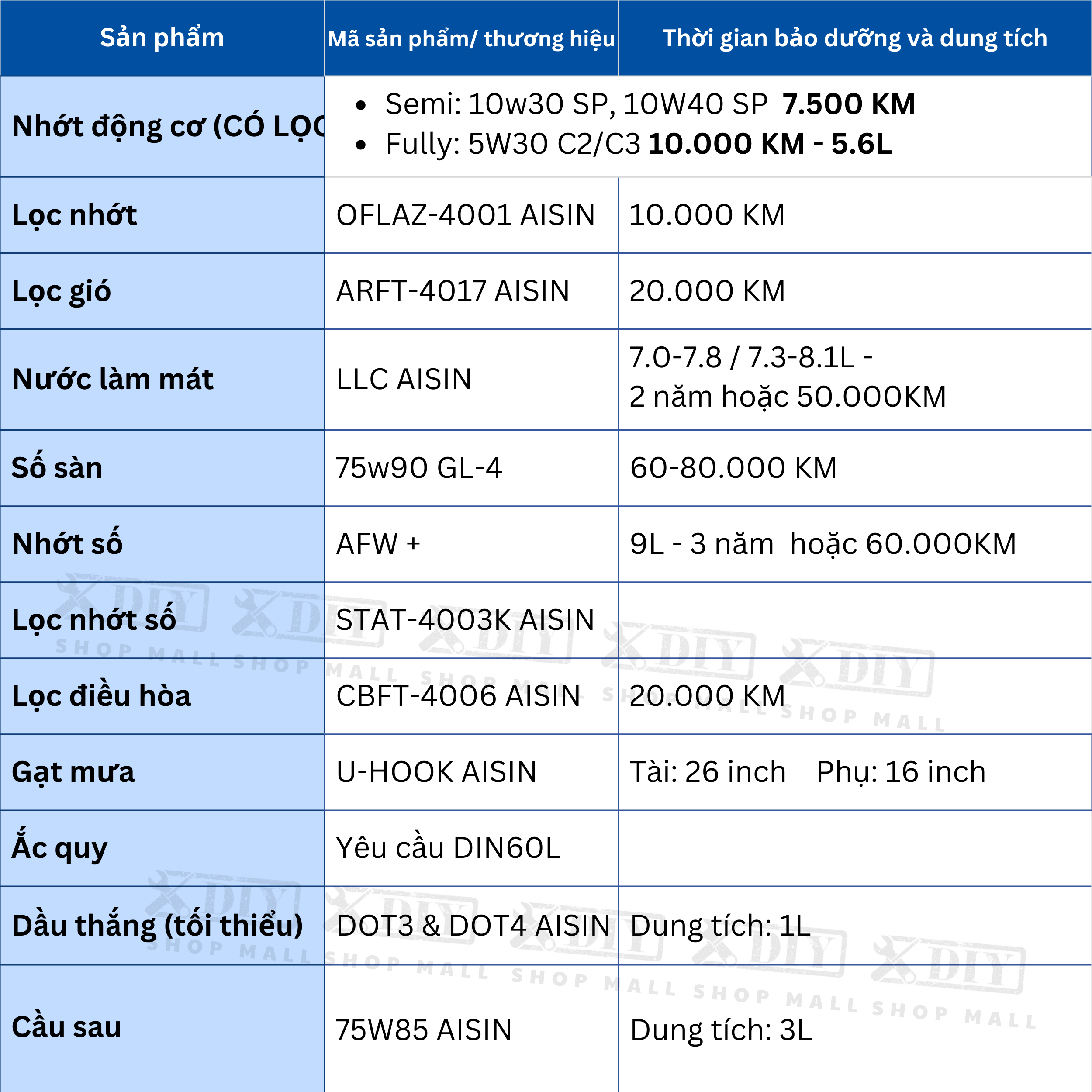 Combo bảo dưỡng Innova Gen 2.0E 2019–2020 được xây dựng sẵn theo thông số thực tế của xe, sử dụng phụ tùng – dầu nhớt chuẩn OEM, giúp chủ xe và gara tiết kiệm thời gian tra cứu, tối ưu chi phí và an tâm khi sử dụng.