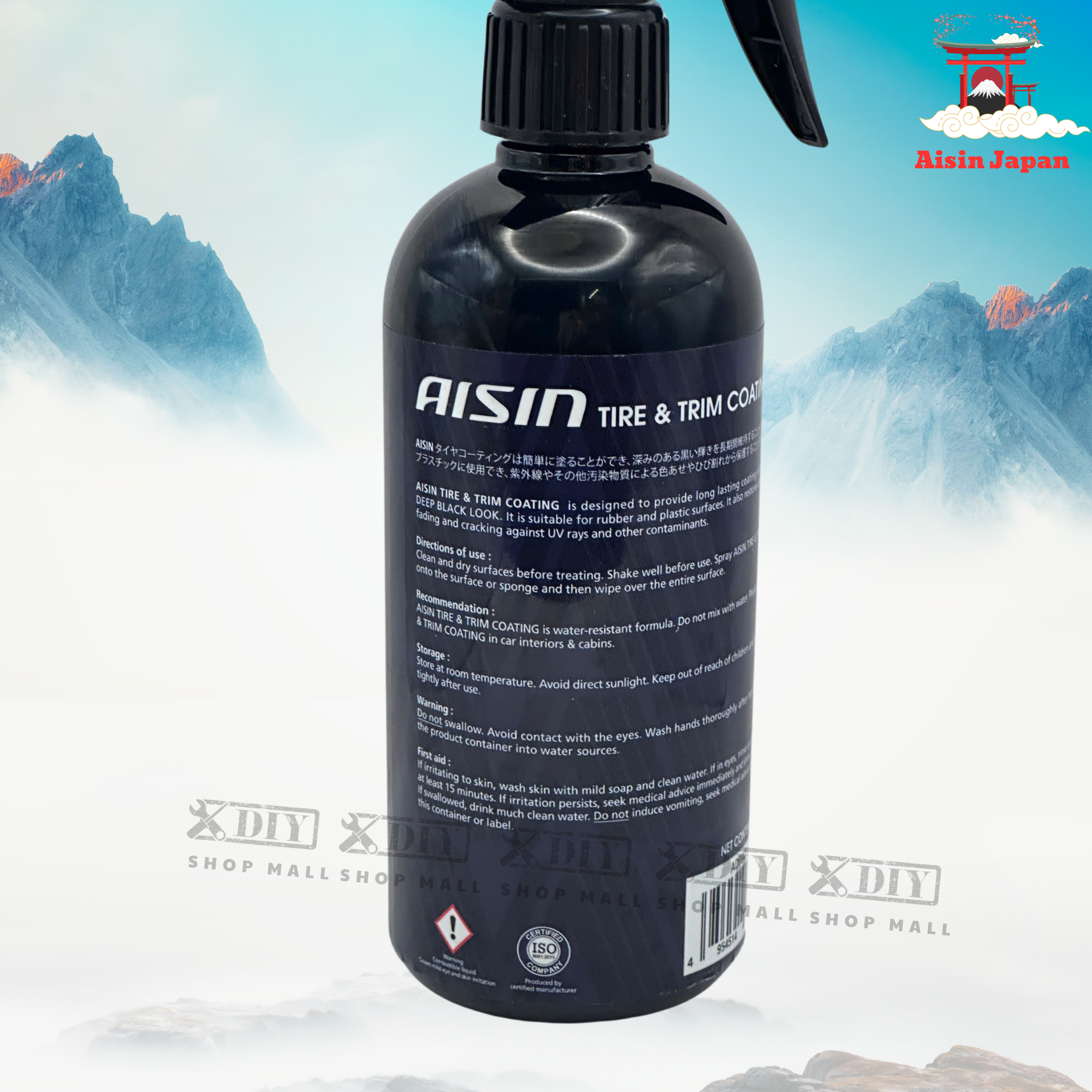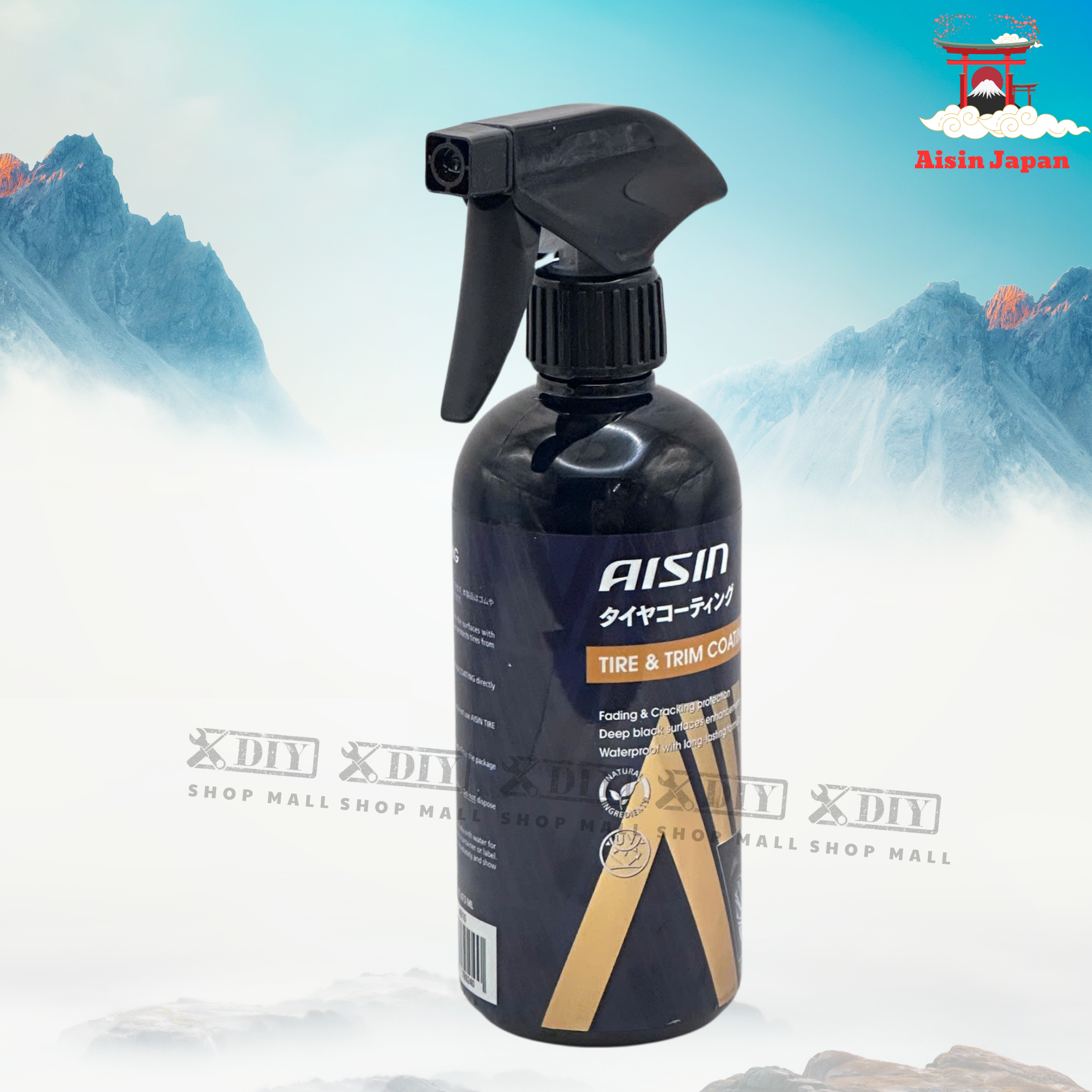 Dung dịch đánh bóng vỏ xe và mâm xe AISIN sử dụng công thức gốc nước với Silicone và chất dưỡng cao su, tạo lớp phủ bảo vệ mỏng, mềm và không bết dính.